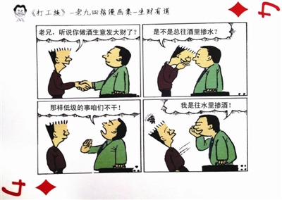 《老九漫画扑克》是著名漫画家老九先生艺术30年系列活动之一。老九,本名王九成,现为中国戏曲学院中国喜剧美学研究所所长、新媒体艺术系动漫专业研究生导师。此套扑克共分《老九集邮幽默画》、《老九讽刺漫画》、《老九四格漫画》三副。老九集邮幽默画是由邮票主图向外延伸,从而进行二度创作的漫画,为老九先生独创,作品没有文字,幽默且蕴含哲理,享誉漫画界和集邮界。老九先生以讽刺漫画见长,弘扬真善美,抨击假恶丑,创作一直绵延至今。(漫 文)