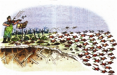 这幅画作者表现的是蹩脚提琴手技艺太差,田鼠不堪其“扰”纷纷逃窜而去……两者之间的矛盾不搭界,也就是比喻很牵强。
