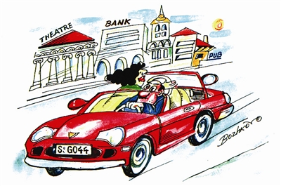 这对夫妻各持己见自行其“道”,彼此间的隙痕十分明显,如不协调驾驶方向,“两人世界”就会像漫画所预警的那样——危险!【保加利亚】波兹科夫