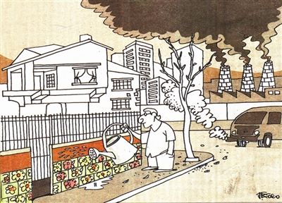 在雾霾甚重的小城镇已少见红花绿叶,居民只能依靠壁画的美景来点缀环境,借助浇“花”缓解抑郁的心境。啊,蓝天在哪儿?