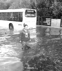 荀笑红说,当天的那场雨太大了,照片里是三区汇水的低洼处,很快就形成了一个积水点。这种井盖每个有150斤重。“井盖一旦打开就不能合上,我得站那儿守着。一是怕井盖被积水打翻,二是为了避免给车辆和行人带来麻烦。我穿的红衣服明显,给他们当个标志……”
