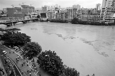 重庆市綦江区綦河水位持续上涨,滨江路被淹(6月19日摄)。