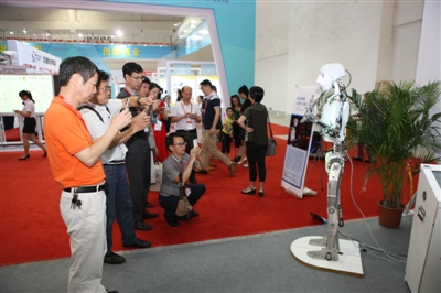 展出仿人形表演机器人——塔米智能“小罗1号”,它全身具备多关节自由度,同时具有丰富的面部动作和LED表情,高灵敏度的肢体展现、生动丰富的面部表情、诙谐幽默的语言表达,配合电视及灯光音响等多媒体设备,带来强大的视觉冲击。