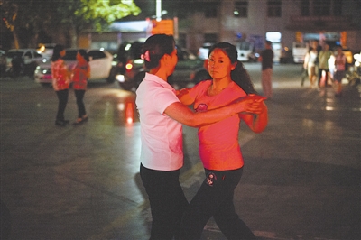 6月15日晚上,矿工家属们在晋煤集团矿区内的一处广场跳交谊舞。能够成为晋煤集团的家属曾是当地人最自豪的事,如今随着职工工资的大幅下降,分流安置成了人们议论最多的话题。