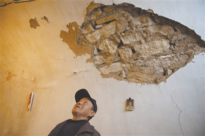 78岁的贾相青所生活的榆林村毗邻煤炭产区,过去连年的炮采作业造成村里耕地及房屋不同程度的开裂及塌陷。