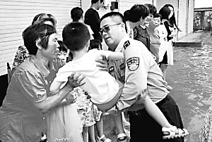 暴雨倾盆,校园积水。在这万分危急时刻,城管队员全部出动。320名幼儿被城管队员全部营救出来。