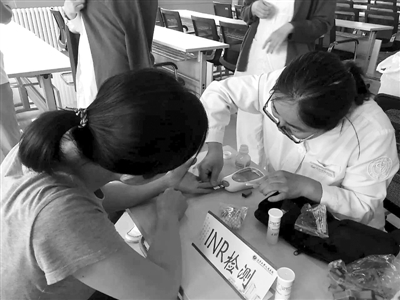 由中国心律失常联盟发起的“2016年房颤周患者教育系列活动”近期在北京各大医院陆续开展。通过健康宣教、专家义诊、免费检测等形式,为居民提供免费的一对一心脏健康咨询服务,现场进行血糖、血压及INR值检测,帮助患者提前发现隐患并给出专业治疗意见,受到群众欢迎。谭泽荫 摄