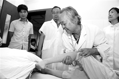 6月17日,钱教授在对一名病儿做最后的检查。张延 摄