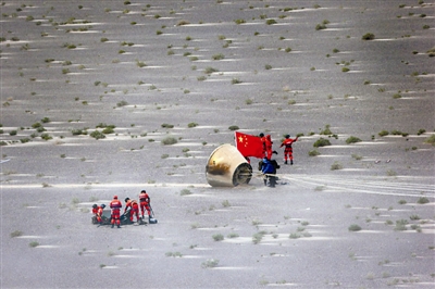 15时41分,多用途飞船缩比返回舱利用伞降系统成功着陆,外观良好,状态正常。