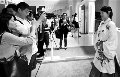 当日,2016夏季达沃斯论坛在天津梅江会展中心举行。在论坛“流动的创意”展览上,主办方展示了各式各样的智能机器人,吸引了众多参会者参观互动。新华社发(连漪 摄)