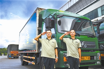 广东省五一劳动奖章获得者、退伍军人陈学志(右一)带领的“老兵邮路”