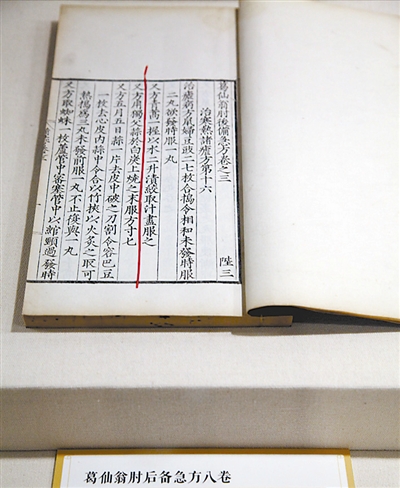明万历刻本《葛仙翁肘后备急方》中的一句:“青蒿一握,以水二升,渍绞取汁,尽服之。”当年,屠呦呦等科研人员就是从这句话中悟出了提取青蒿素的奥秘。