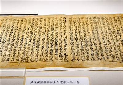 据悉,此次展出的典籍范围广大、版本精良,特别是国家图书馆收藏的三件世界印刷史上标志性珍贵文献首次集体亮相。其中五代后唐天成二年(927)刻本《佛说观弥勒菩萨上生兜率天经一卷》(简称《弥勒上生经》)仅比咸通九年《金刚经》晚59年,为国内已知有纪年的最早雕版印刷品。另两件分别为晚唐五代刻本《金刚般若波罗蜜经一卷》、五代北宋初刻本《弥勒下生经一卷》。这三件刻本弥补了中国作为雕版印刷术发明的故乡却无早期实物的遗憾。