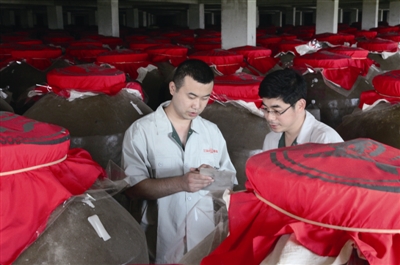 总经理吴京耕(左一)在原酒车间进行6S检查