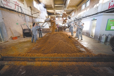 6月的辽宁三沟酒业有限责任公司厂区树绿花红,空气中飘散着淡淡的酒香,职工在生产车间紧张忙碌,一派生机盎然景象。