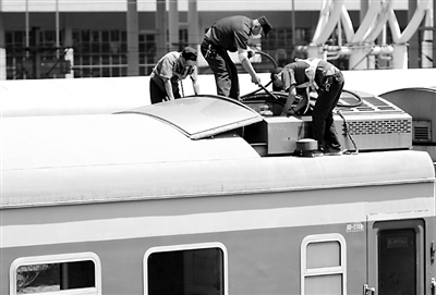 连日来,南昌铁路局一线作业人员冒着酷暑检修铁路线路和客车设备,迎接即将到来的铁路新运行图大调整后的第一个暑运。