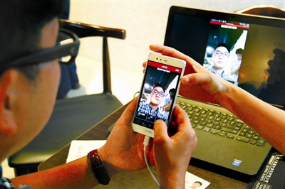 6月29日下午,浙江省桐庐县横村镇孙家村小伙陆艳星在自己手机上比对人脸识别功能。