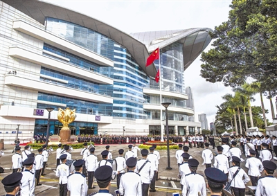 7月1日,香港特区政府在金紫荆广场举行升旗仪式,庆祝香港回归祖国19周年。 新华社记者 吕小炜 摄