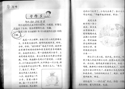 谁知第二天家长找来了,说孩子是照着书上写的。彭帮怀立即找来某出版社出版的教材,果然在五年级教材一篇名为“读《给予是快乐的》”的示范习作里,发现了这个问题。与此同时,另一名学生在使用冒号、双引号时,也发生了与教材同步出错的问题。