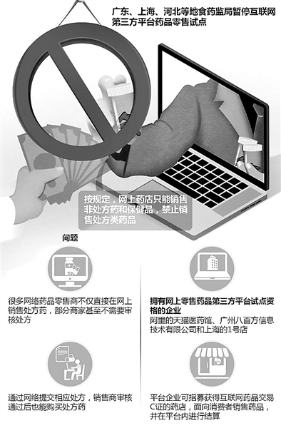 据央视新闻6月29日报道,因网络售药问题多,近期,广东、上海、河北等地食药监局纷纷暂停互联网第三方平台药品零售试点。