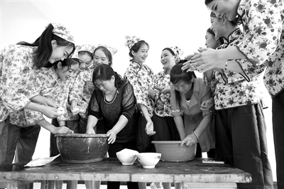 近日,在河南省卢氏县举行的2016国际旅游小姐中国总决赛活动上,来自全国各赛区的参赛选手走进农家院,体验当地民风民俗,为当地农业旅游的发展助力。图为参赛选手在村民的指导下学做白面馒头。本报记者 王伟伟 摄