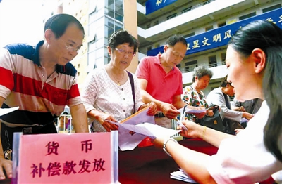 7月3日,安徽省合肥市瑶海区安拖东村棚户区改造项目的棚改居民在办理领取货币化安置补偿款手续。