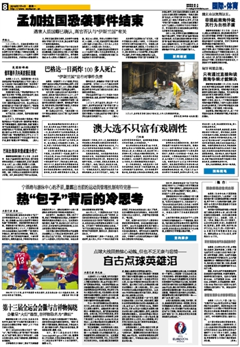 7月1日至2日,孟加拉国首都达卡发生武装分子劫持人质事件,共有20名人质遇害,2名警察殉职,6名恐怖分子被击毙。孟加拉国军方目前已经确认了遇害者的国籍。孟加拉国总理哈西娜宣布从3日起举行为期两天的全国哀悼活动,并表示决心根除恐怖主义。另有孟加拉国高官表示,此次事件与极端组织“伊斯兰国”并无关系,袭击者属于该国一个被禁的激进组织。