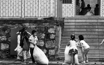 7月3日,湖北宜昌市夷陵区下堡坪乡中心小学迎来暑假第一天,数百名小学三年级至六年级的学生将自己的生活用品打包在简易的编织袋中,搬到操场上等候家长前来接自己回家。据了解,这些9至12岁的“小候鸟”大多来自较偏远的山村,在外务工的父母把小孩交由年老的爷爷奶奶照顾,每天上学要步行数小时不等的他们只好选择寄宿在学校。 刘蛟 摄/视觉中国