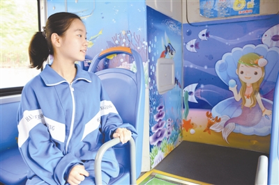 美人鱼、海龟、海豚、海星、鲨鱼、水草、珊瑚……日前,河北省邯郸市47岁的女公交司机高红雁,独立构思、设计、布置,利用约三个月的业余时间,将她所驾驶的21路公交车打造成一个颜值爆表的立体“海洋世界”,车内用蓝色车座配以海蓝基调的画面,让乘客感觉清凉十足。