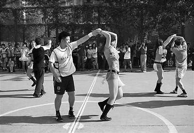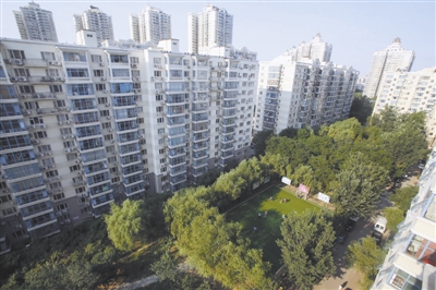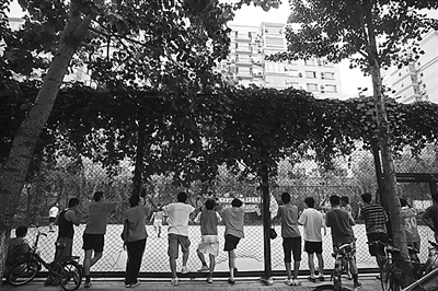 在高楼林立的小区里,球场周边是块难得的绿色。