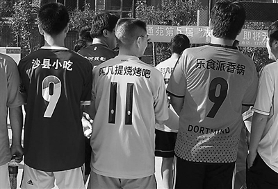 2012年5月5日,第五届足球赛开幕式。为了必要开支,组织者从周边的饭馆拉来了赞助。