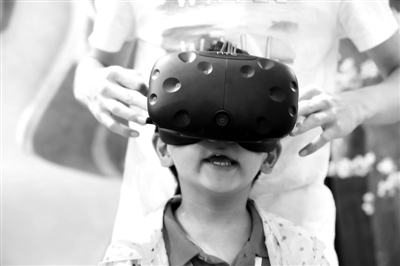 其中,VR产品和相关展览再度成为大热门,成为观众尤其是年轻群体围观的对象。图为江苏省扬州市一位小朋友在扬州国展中心体验VR虚拟场景视界。