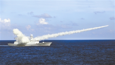 题图:7月8日,导弹护卫舰运城舰发射反舰导弹。当日,海军在海南岛至西沙附近海空域组织实兵实弹对抗演练。(新华社发)