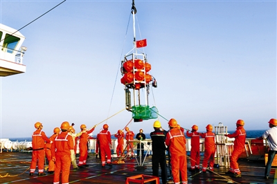 7月16日,“张謇”号上进行“彩虹鱼”万米级着陆器布放演练。
