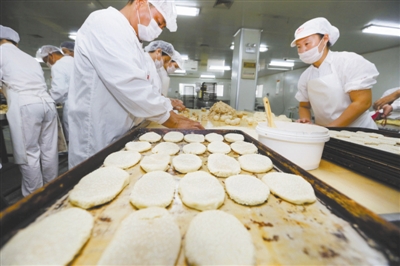 江苏省南通市文峰街道以提升辖区残疾人就业技能为抓手,组织辖区40余名残疾人走进当地食品公司,接受中式传统点心制作技能培训,并帮助部分残疾人解决就业。图为7月16日,残疾人学习中式传统点心制作。新华社发 许丛军 摄