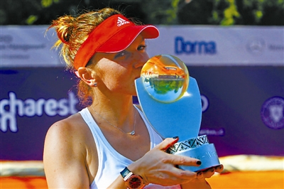 7月17日,在WTA国际巡回赛布加勒斯特公开赛女单决赛中,罗马尼亚选手哈勒普以2比0战胜拉脱维亚选手塞瓦斯托娃,夺得冠军。图为哈勒普亲吻奖杯。 新华社发