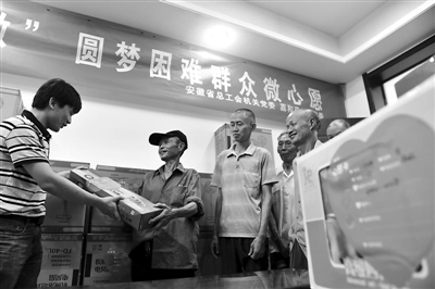 7月19日,嘉和苑社区居民在领取“微心愿”礼物。