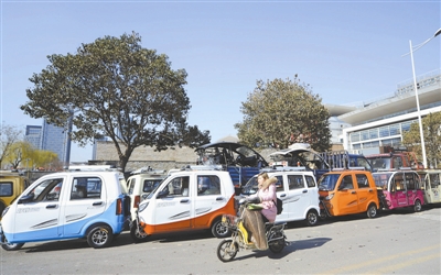 “好开不贵,还有空调,速度可以调节,汽车有啥,这车就有啥。”现场销售人员向顾客推销时说,这种车出行方便,“现在城市拥堵厉害,咱这种车小,就算是拥堵,也好停车、好通过。充一次电跑一天没问题,主要是能挡风挡雨。”