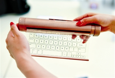 在位于深圳南山科技园的柔宇科技总部,一名员工展示柔性传感透明键盘。从3个海归博士到一个超过500人的国际化团队,柔宇科技在4年时间里迅速成长。柔性显示作为公司的核心技术,为下一代电子产品提供了无限的想象空间。新华社记者 毛思倩 摄