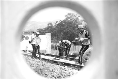 7月5日至6日,西安铁路局绥德工务段举办第四届线路工技能竞赛,激发职工学技练功、岗位争先的热情。图为该段参赛选手进行线路混凝土轨枕螺栓凿锚项目比赛的情景。 韩二飞 摄