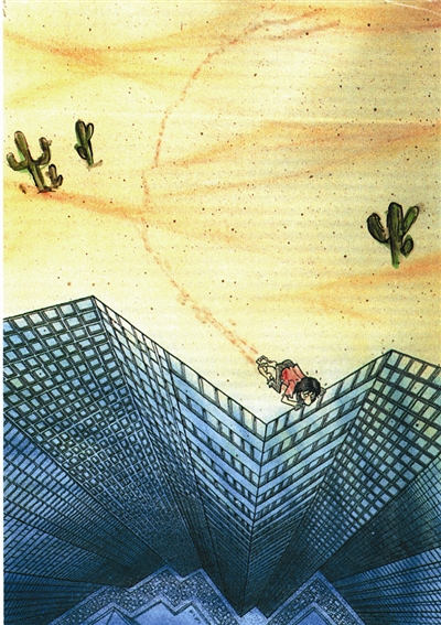 茫茫的沙漠逐渐向地球袭来,失控的钢筋水泥建筑更给有限的空间造成负面效应。人们回望自身失误犹如堕入无底深渊。