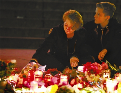 7月23日,人们在德国慕尼黑奥林匹亚购物中心门前悼念枪击案遇难者。