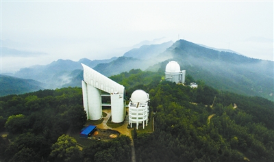 在河北省兴隆县境内燕山主峰,一座巨大的白色建筑斜架在南麓山顶,指向天空,这就是我国自主创新研制的天文大科学装置——郭守敬望远镜。郭守敬望远镜主镜由37块边长1.1米的六角形镜子拼接而成,相当于直径6.5米的圆镜,每次观测可获得多达4000个天体的光谱。