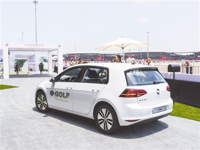 图为e-Golf展示智能手表控制记忆自动泊车,正在驶向车库。视觉中国 供图
