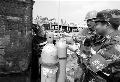 当日,辽宁锦州边防支队小柳边防派出所执勤小分队,冒着酷暑到辽河油田锦州采油区,举行法制宣传教育、巡逻检查和事故隐患排查等活动,确保高温时节油田作业安全。