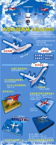 “AG600填补了我国大型水陆两栖飞机的空白,是国家应急救援体系建设急需的重大航空装备,对我国经济发展和转型升级具有重大意义。”中航工业副总经理耿汝光向在场的媒体表示。