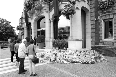 7月27日,法国鲁昂,民众前往发生人质劫持案的教堂外献花,悼念遇害牧师。东方IC 供图