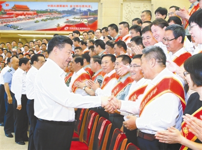 7月29日,党和国家领导人习近平、李克强等在北京会见全国双拥模范城(县)命名暨双拥模范单位和个人表彰大会代表。 新华社记者 鞠鹏 摄