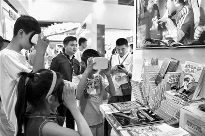 当日,在包头举办的第26届全国图书交易博览会上,参展商大量运用电子阅读、增强现实(AR)、虚拟现实(VR)技术,将平面读物立体化、生动化,新颖的阅读方式吸引大量参观者体验,感受图书从纸质形态向“接触式”阅读方式的创新转变。