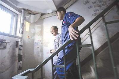 张东义和儿子在厂区家属楼。地震孤儿张东义一家三代都在唐车上班。